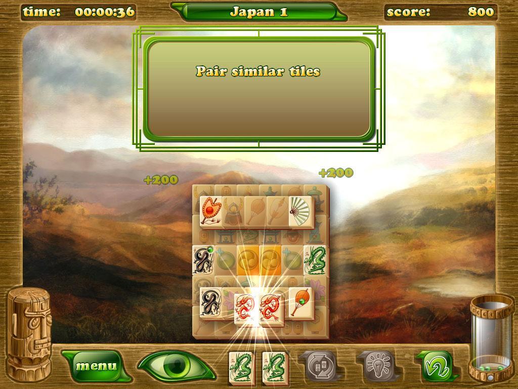 Pair up Mahjong tiles and clear the board to move through the storyline.